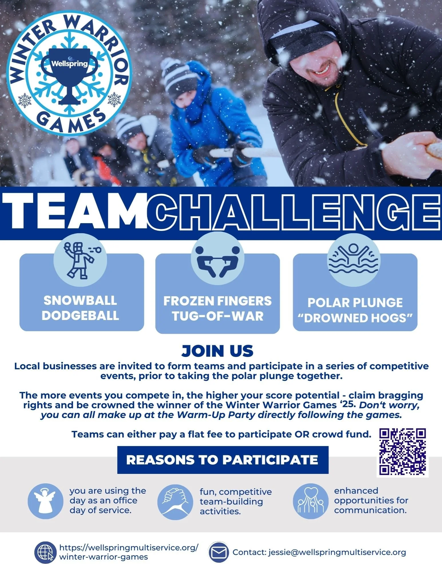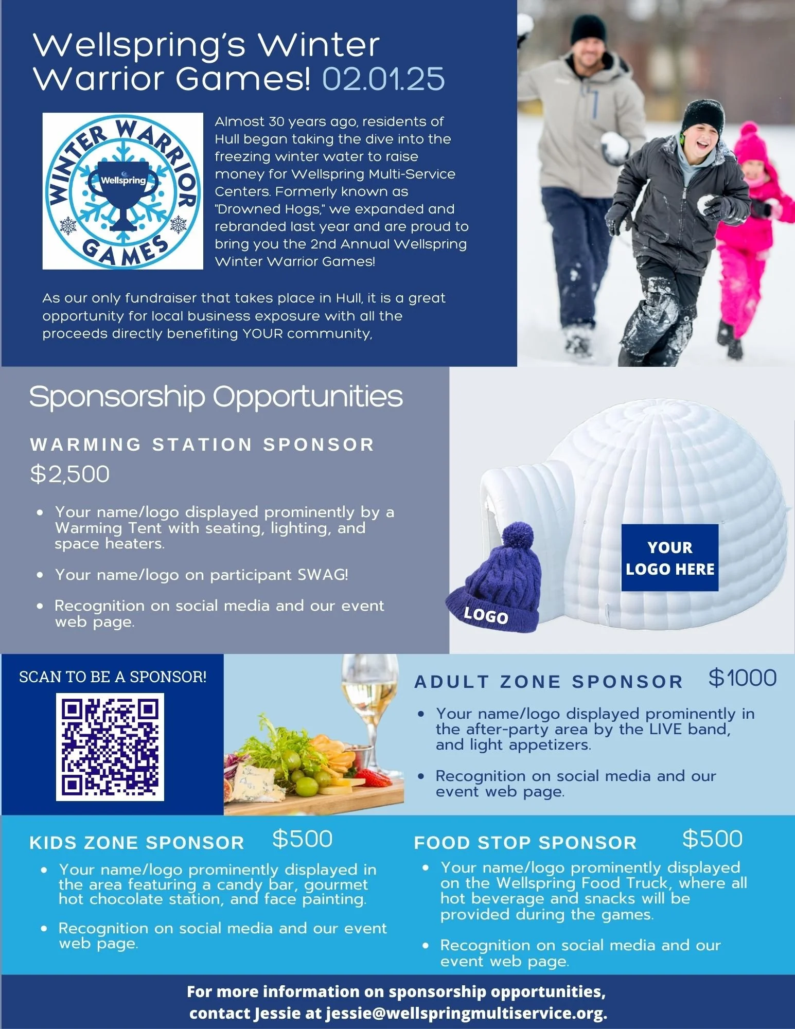 With the addition of competitive events, Winter Warrior Games ’25 will capture a new audience that celebrates Hull and focuses on building community while raising funds for Wellspring – a truly community-based non-profit. Sponsors will be able to advertise to their community, while directly giving back to it.